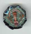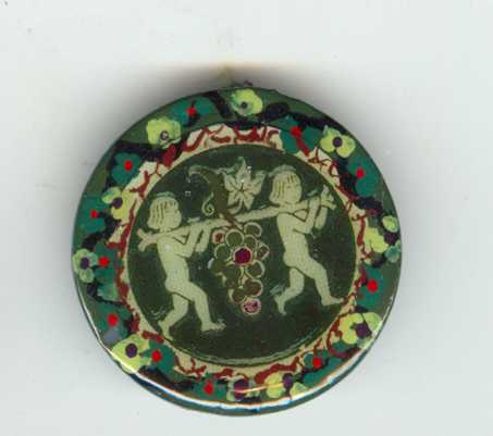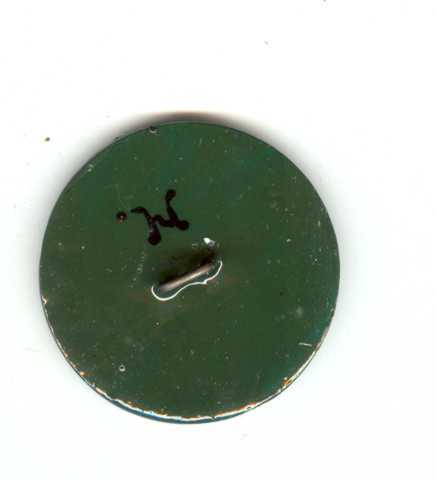Size 1 1/2" with metal loop shank. Large concave shape metal button with carved edges. Nicely painted front and back.